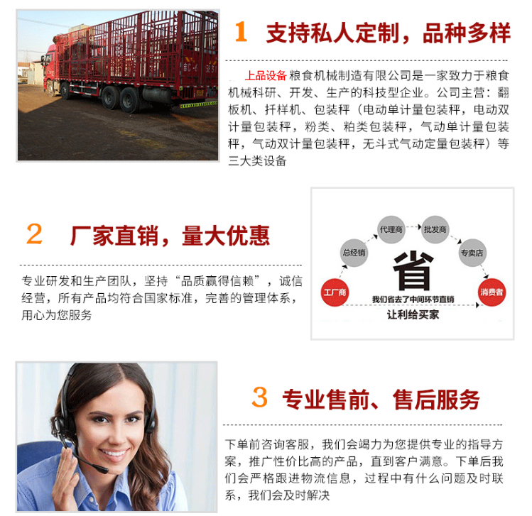 本機適合中、小型收糧戶、現場收糧篩分直接將糧食拋進倉內和糧堆。本機屬于玉米、大豆、小麥、蕎麥等多用清選機械,需用時更換篩網即可,每小時8噸,精選度95%,大豆98%。拋糧高度2.5米,落差4-6米。