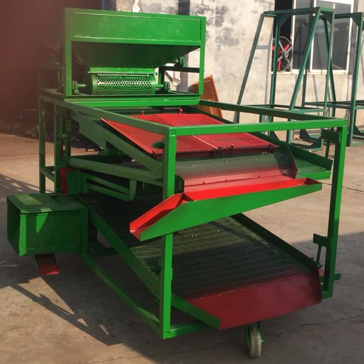 花椒除雜篩是利用打碎分離+篩選的方式進行花椒打把脫粒篩選處理,原枝花椒放進進料斗后把花椒把打下來,花椒籽從殼里打出來,通過下料器落到篩面上篩選,一層篩選出來的梅花椒和大的花椒枝葉----二層是花椒籽,會落到風機口進行二次風選----三層進行復試篩選----四層是成品椒殼,可以直接打包,我們都知道花椒篩分機都是上下篩,下篩篩出來的花椒枝葉,以前十幾個人干的工作,現在只需一人就能完成,篩選凈度高,產量也大。