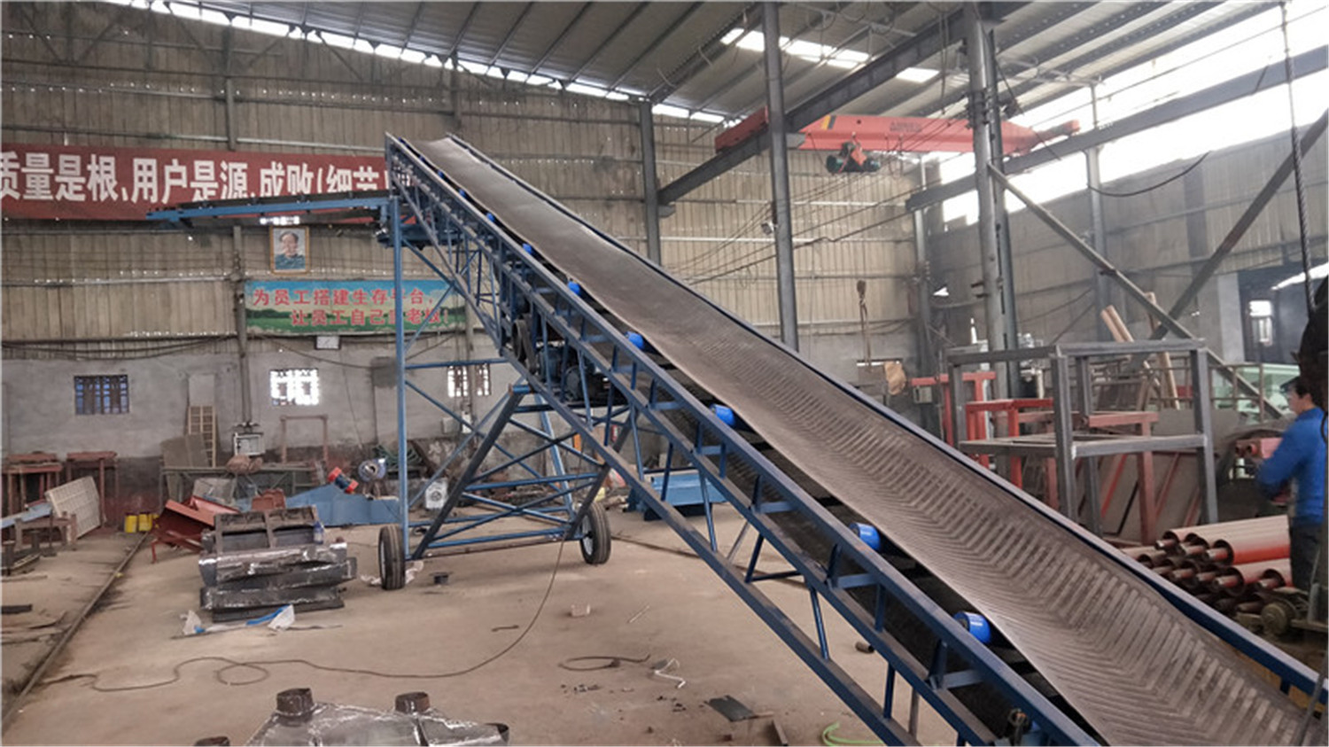 在移動(dòng)式皮帶輸送機(jī)機(jī)架兩旁裝可配有擋管或擋邊,防止糧包在輸送時(shí)掉包,防止糧食撒漏,便于散裝糧食輸送。大、小走輪均采用實(shí)心膠輪或充氣橡膠輪,防止壓碎糧食和倉(cāng)庫(kù)地面。小走輪具有自動(dòng)轉(zhuǎn)向的功能,保證了機(jī)器移動(dòng)輕便靈活。移動(dòng)式皮帶輸送機(jī)機(jī)架采用焊接的珩架結(jié)構(gòu),在包運(yùn)集中載荷下有足夠的強(qiáng)度和良好的鋼性。主要用于裝卸地點(diǎn)經(jīng)常變更動(dòng)的場(chǎng)所,用來(lái)短途運(yùn)輸及裝卸散料或單件重量300公斤以下的成件物品。輸送機(jī)底部安裝有萬(wàn)向輪,可以根據(jù)物料的堆放位置隨意移動(dòng),是一種工效高,使用安全可靠,機(jī)動(dòng)性好的連續(xù)輸送裝卸設(shè)備。經(jīng)常使用的移動(dòng)式皮帶輸送機(jī)寬度有500mm、600mm、800mm等,經(jīng)常使用的長(zhǎng)度有6米、8米、10米、12米、15米、16米、18米、20米、22米、30米100米200米等其它有客戶根據(jù)實(shí)際需求而制本系列輸送機(jī)分為可升降型及不可升降型兩大類,即:可移動(dòng)不帶升降式皮帶輸送機(jī)和可移動(dòng)升降式皮帶輸送機(jī)兩種類型。